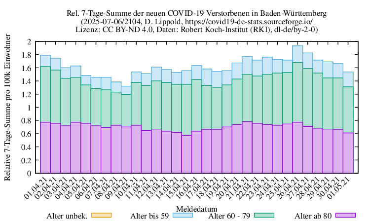 7-Tage-Summen der neuen Verstorbenen pro 100 Tausend Einwohner für April 2021