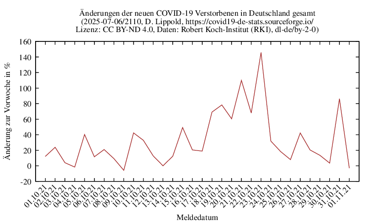 Änderungen 7-Tage-Summen zum Vortag der neuen Verstorbenen für Oktober 2021