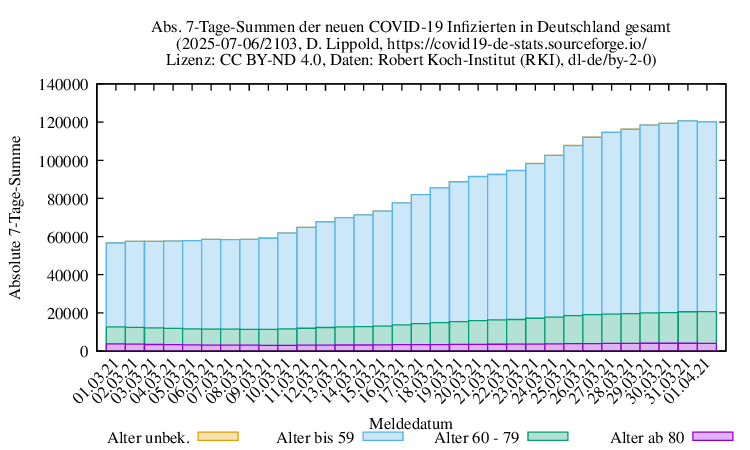 Absolute 7-Tage-Summen der neuen Infizierten für März 2021