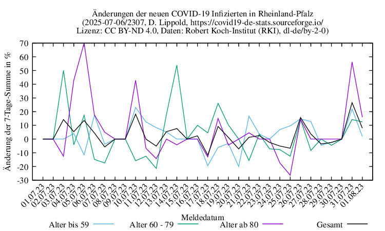Änderungen 7-Tage-Summen zum Vortag der neuen Infizierten für Juli 2023