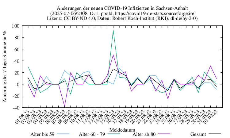 Änderungen 7-Tage-Summen zum Vortag der neuen Infizierten für August 2023